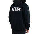 The hoodie features the elegant serif typeface Bookmania designed by Mark Simonson. This fleece is very heavy and will provide you with warmth in temperatures as low as 50°F (10°C). This hooded pullover sweatshirt is made in South Central, Los Angeles by expert sewers using premium construction materials and techniques.