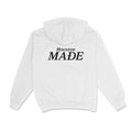 The hoodie features the elegant serif typeface Bookmania designed by Mark Simonson. This fleece is very heavy and will provide you with warmth in temperatures as low as 50°F (10°C). This hooded pullover sweatshirt is made in South Central, Los Angeles by expert sewers using premium construction materials and techniques.